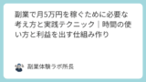 副業で成果を出すには、「他人にとって稼げる方法」よりも「自分が続けられる方法」を見つけることが大切です。